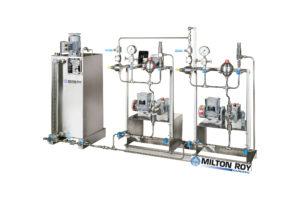 De Milton Roy DosaSkid is een compleet, compact en gestandaardiseerd doseersysteem dat ontworpen is voor snelle installatie en betrouwbare werking in industriële toepassingen. Het systeem combineert doseerpompen, opslagtanks, leidingwerk en besturing in één voorgemonteerde en geteste eenheid. De DosaSkid is modulair opgebouwd en eenvoudig aan te passen aan specifieke procesvereisten, wat zorgt voor maximale flexibiliteit en efficiëntie. Dankzij het doordachte ontwerp en de hoogwaardige componenten biedt de DosaSkid een duurzame en onderhoudsvriendelijke oplossing voor nauwkeurige chemische dosering in diverse industrieën.